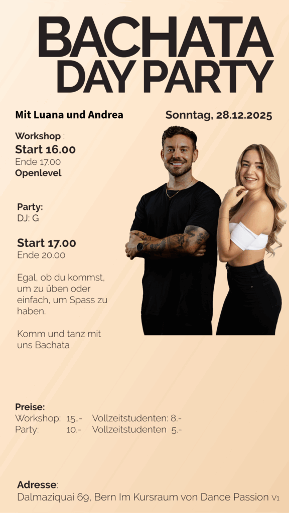 Egal, ob du kommst, um zu üben oder einfach, um Spass zu haben. Komm und tanz mit uns Bachata